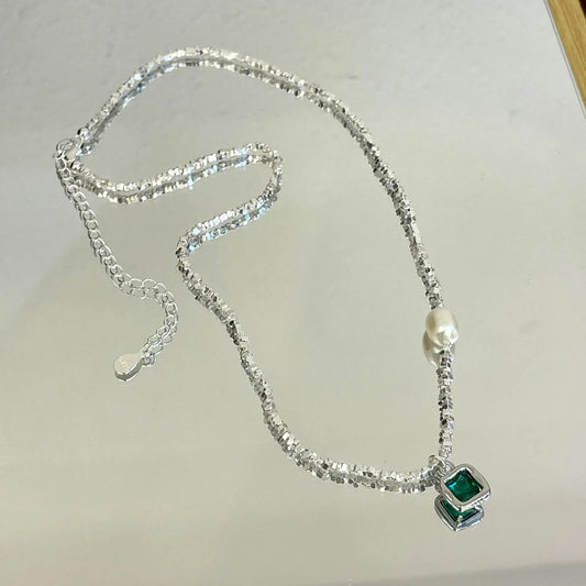 Aurora Green – naszyjnik i bransoletka w zestawie ze srebra 925 z zielonym akcentem